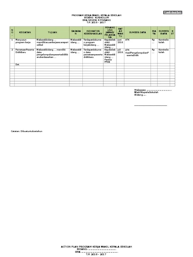 1 program kerja waka kurikulum berikut contoh program kerja waka kurikulum untuk tahun pelajaran program kerja wakil kepala sekolah bidang kurikulum d.